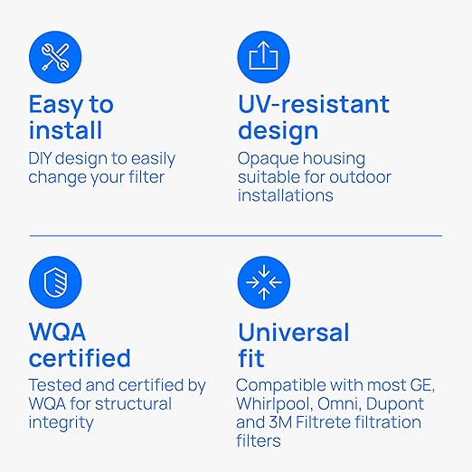 - Whole house water filtration system with a 3/4" inlet/outlet connectors