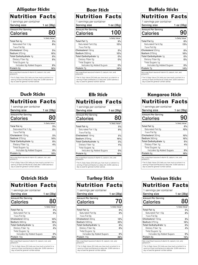 - DELICIOUS VARIETY: The Buffalo Bob's Wild Game Meat Snacks (24 pack) offers an assorted beef jerky variety pack featuring a mix of flavorful strips and sticks, perfect for any jerky lover. These exotic snacks add exciting flavors to your pantry.
