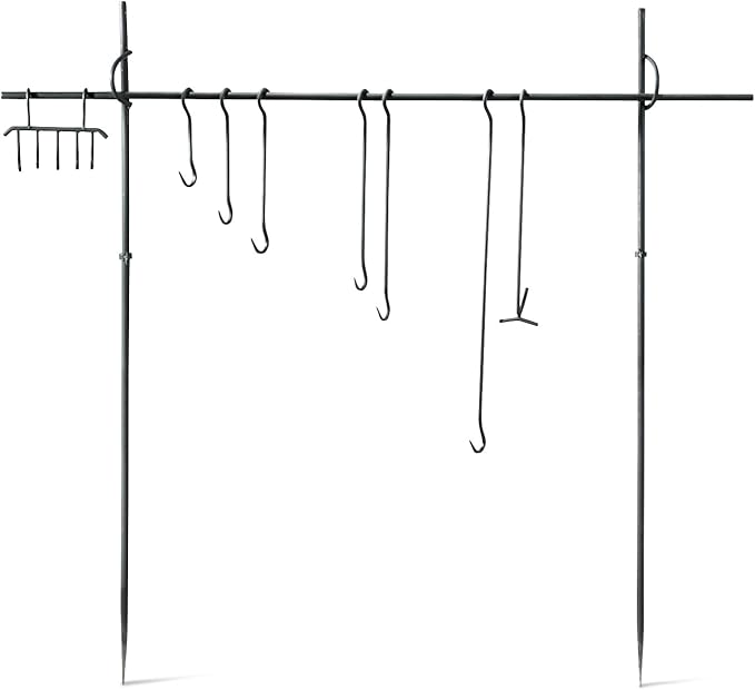 - EASY SET-UP – The Guide Gear Outdoor Campfire Cooking Set is easy to install. Pound the two 4’10” side posts into the ground, assemble the crossbar, hang your hooks and you’re ready to cook.