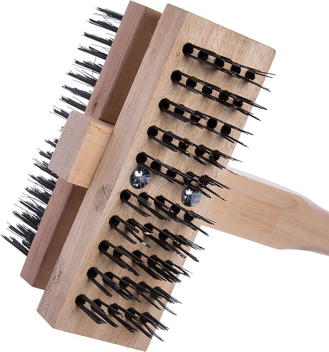 - High-strength metal bristles ensure robust cleaning power for tough messes and stubborn grime on grills and surfaces