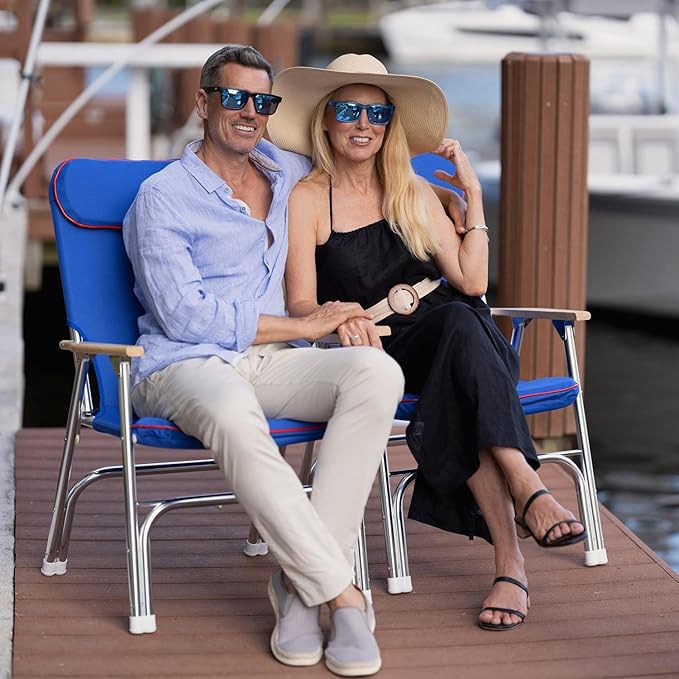 Seachoice High-Back Canvas Folding Chair, Blue w/Red Trim, Folds for Easy Storage
