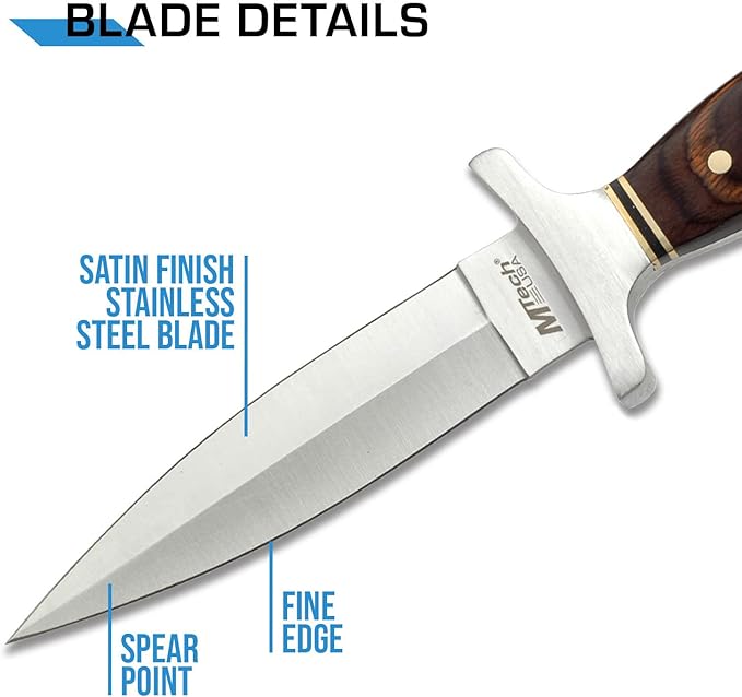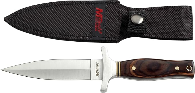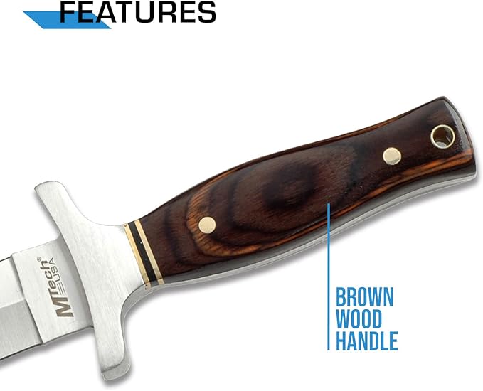 MTech USA – Fixed Blade Knife – Satin Finish Stainless Steel Blade, Brown Wood Handle with Stainless Steel Bolster, Includes Nylon Sheath - Hunting, Camping, Survival, Tactical – MT-20-03