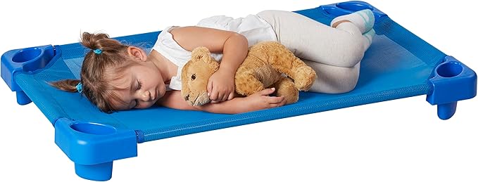 ECR4Kids Stackable Kiddie Cot, Ready-To-Assemble, Toddler Size, Classroom Furniture, Blue, 6-Pack