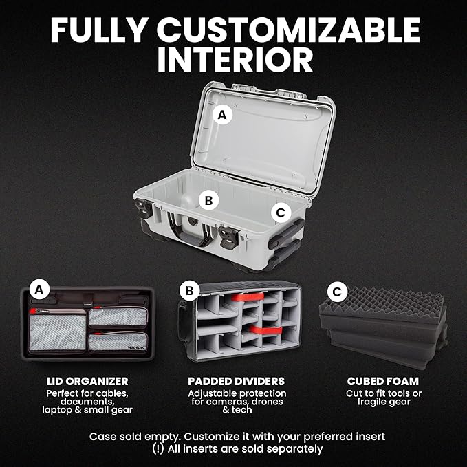 - EMPTY INTERIOR FOR FULL FLEXIBILITY: This empty version of the NANUK 935 allows you to fully customize the interior to suit your needs. Ideal for professionals who prefer a build-your-own configuration. Accessories such as foam, padded dividers, or a lid organizer are sold separately.