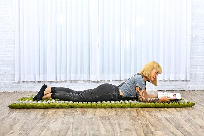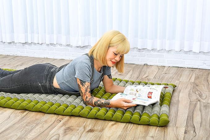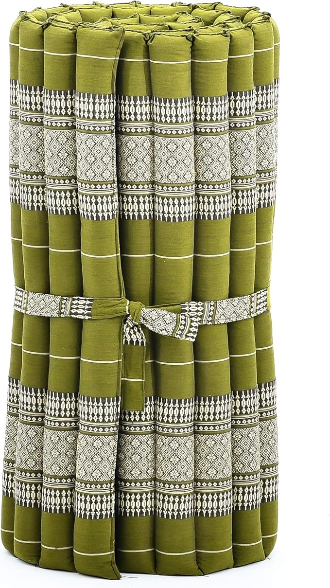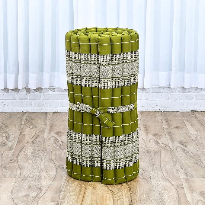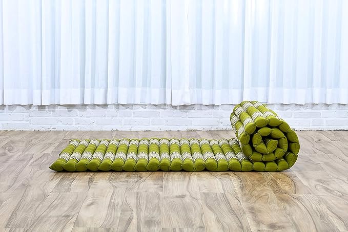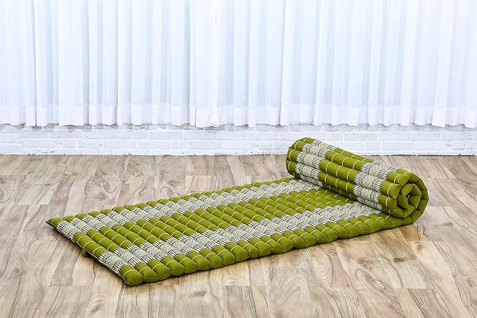 Leewadee - Foldable Floor Mattress - Japanese Roll Up Futon -Trifold Tatami Mat- Guest Floor Bed - Camping Mattress - Thai Massage Mat, Kapok Filled, 75 x 28 inches, Green