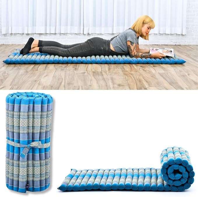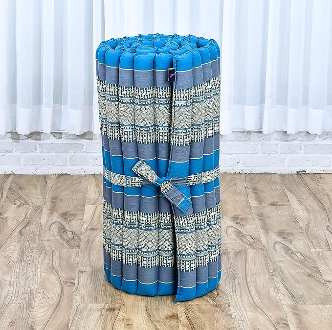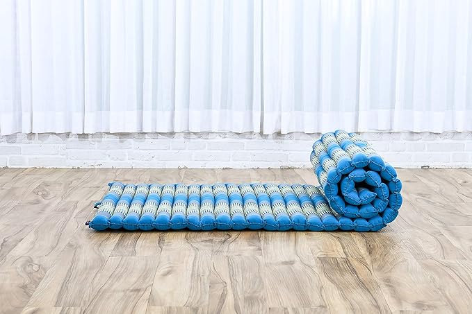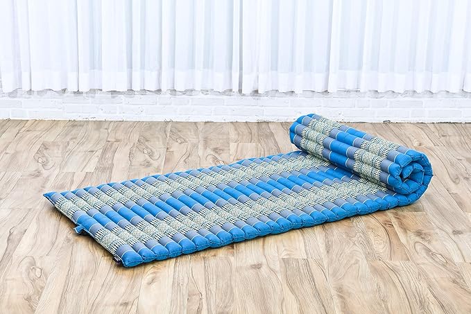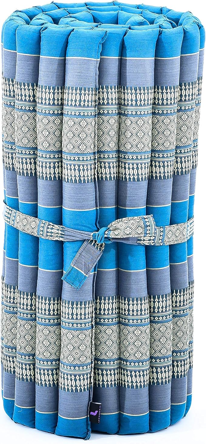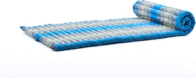Leewadee - Foldable Floor Mattress - Japanese Roll Up Futon -Trifold Tatami Mat- Guest Floor Bed - Camping Mattress - Thai Massage Mat, Kapok Filled, 75 x 28 inches, Light Blue
