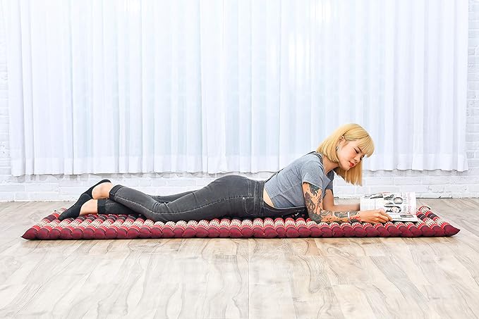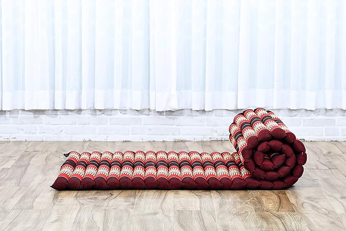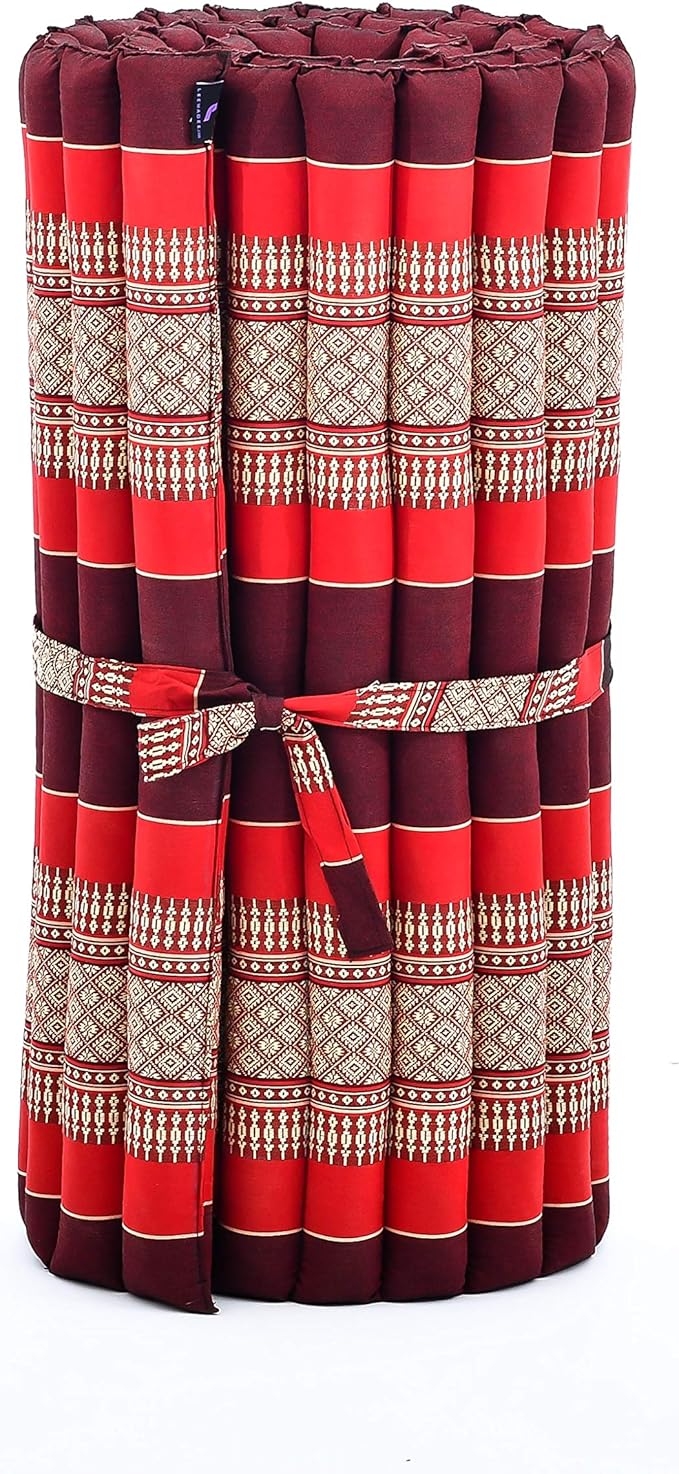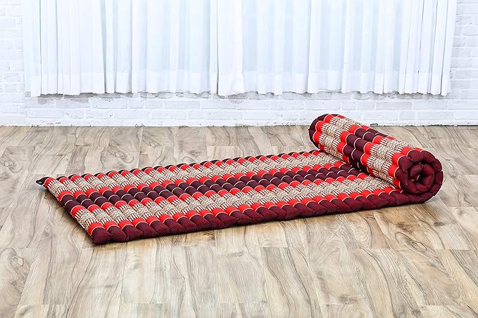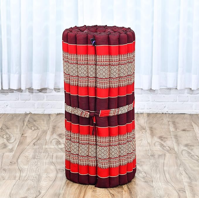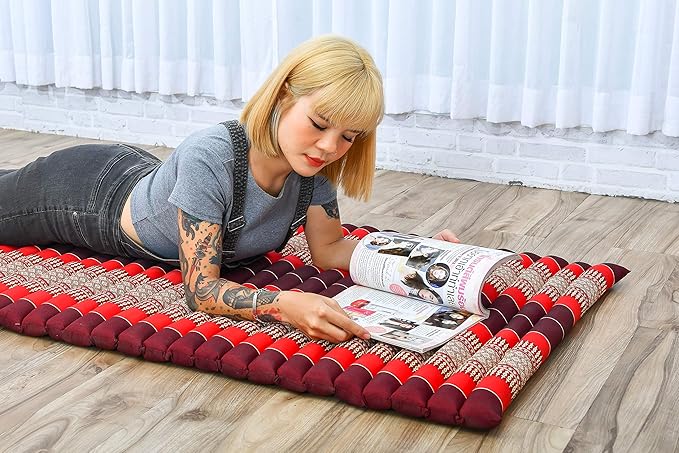 Leewadee - Foldable Floor Mattress - Japanese Roll Up Futon -Trifold Tatami Mat- Guest Floor Bed - Camping Mattress - Thai Massage Mat, Kapok Filled, 75 x 28 inches, Red