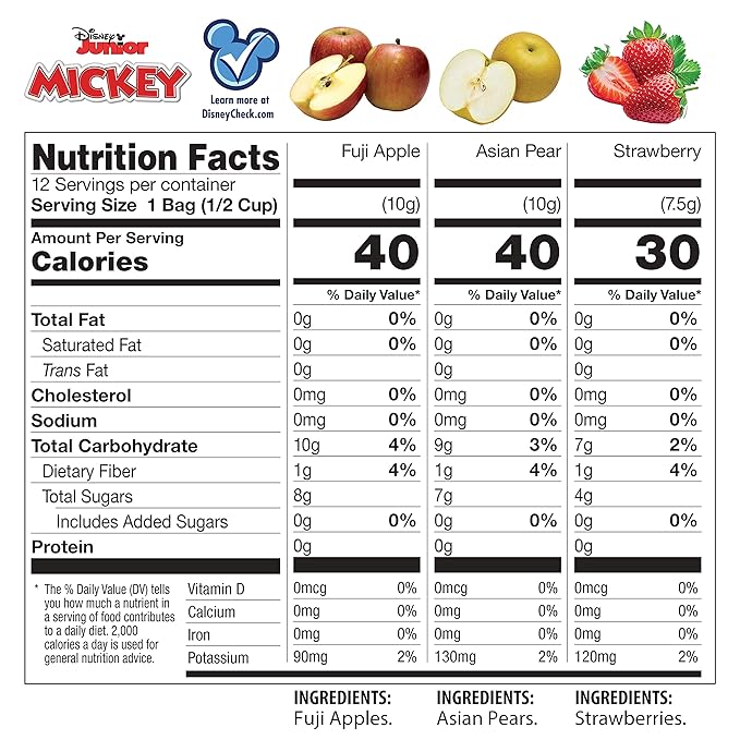 Brothers All Natural Disney Freeze Dried Fruit Crisps, Variety Pack, 12 Single Serve Bags, Fuji Apple, Asian Pear, Strawberry, Made with 100% Fruit, Gluten Free, Soy Free, Vegan, Heathy Snack