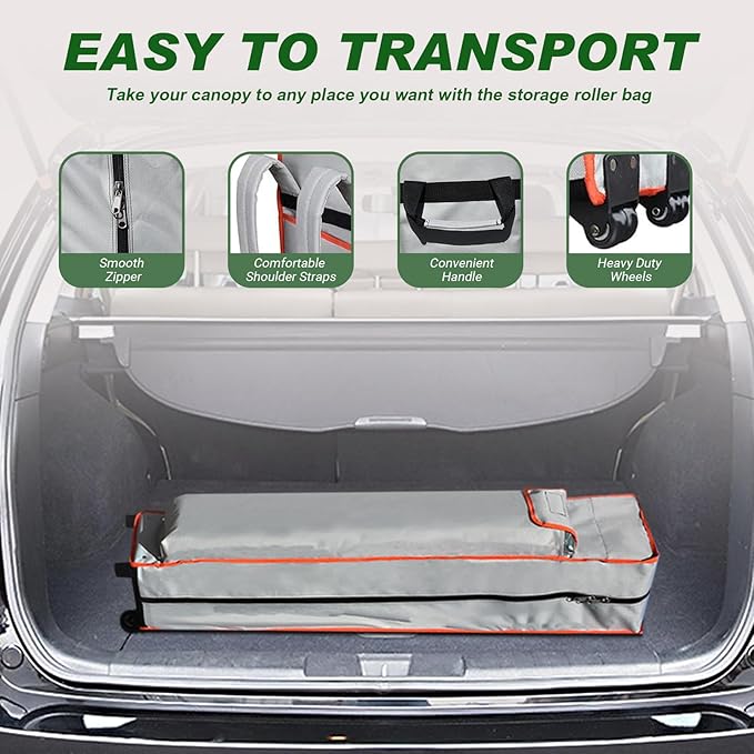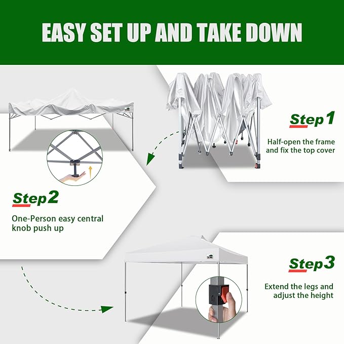 - Smooth Set Up: Easy and strong way to fix the cover to the frame by straps.Setting up is easy and takes only minutes without any hassle. No tools required.Utilize pinch-free buttons to conveniently adjust the leg height:6FT,6.3FT,6.6FT, providing the flexibility to tailor the canopy to your specific requirements. This user-friendly design streamlines the setup process, allowing you to have your canopy ready in no time.