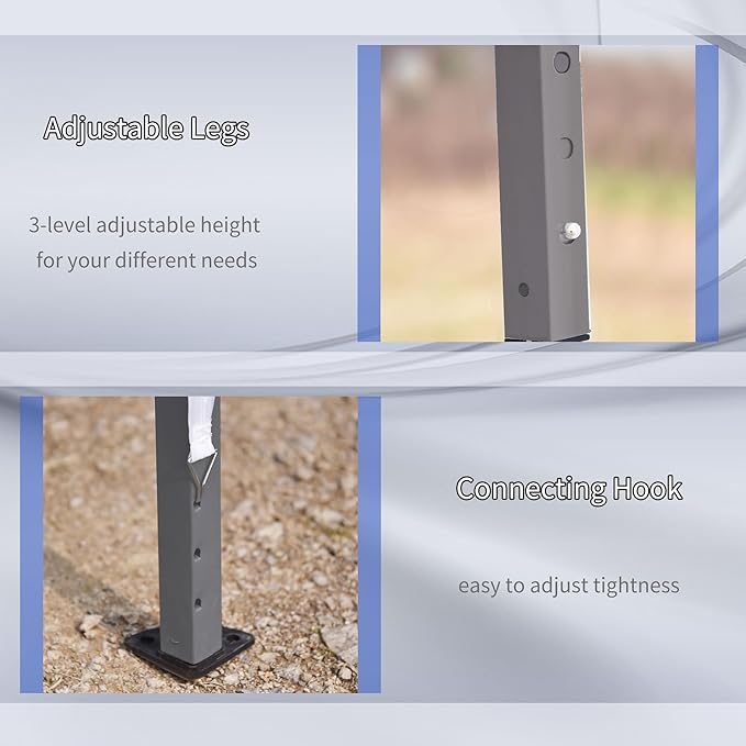 - Upgraded Heavy Duty Frame: A truss-reinforced roof and 1.25" thick powder-coated steel pipes create an outdoor-strong tent. Stakes secure it to any soft surface. Customize the height of your pop-up canopy tent with 3-setting height adjustable legs.