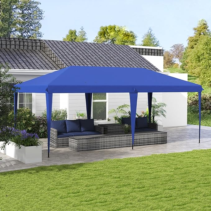 Outsunny 10' x 19.2' Pop Up Canopy Tent, Heavy Duty Tent for Parties, Outdoor Instant Gazebo Sun Shade Shelter with Carry Bag for Catering, Events, Wedding, Backyard BBQ, Blue