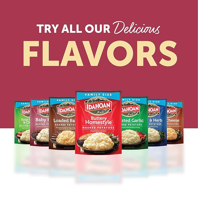 Idahoan Baby Reds Mashed Potatoes, Naturally Gluten-Free, 100% Real Idaho Potatoes, 8 servings per bag, 8 ounce (Pack of 8)