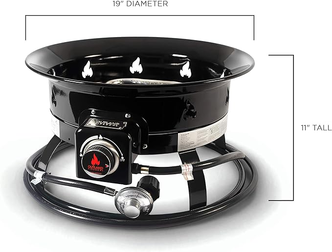 - ✓ COMPACT AND EASY TO TRANSPORT: Travel size fire pit is lightweight and portable; easily set up in minutes with no tools required. All weather fire bowl delivers a clean and smokeless flame with cozy warmth and beautiful evening ambiance. Measures L 19” x W 19” x H 11” with total output of 58,000 BTU/HR. Max Gas Supply Pressure: 250 PSI