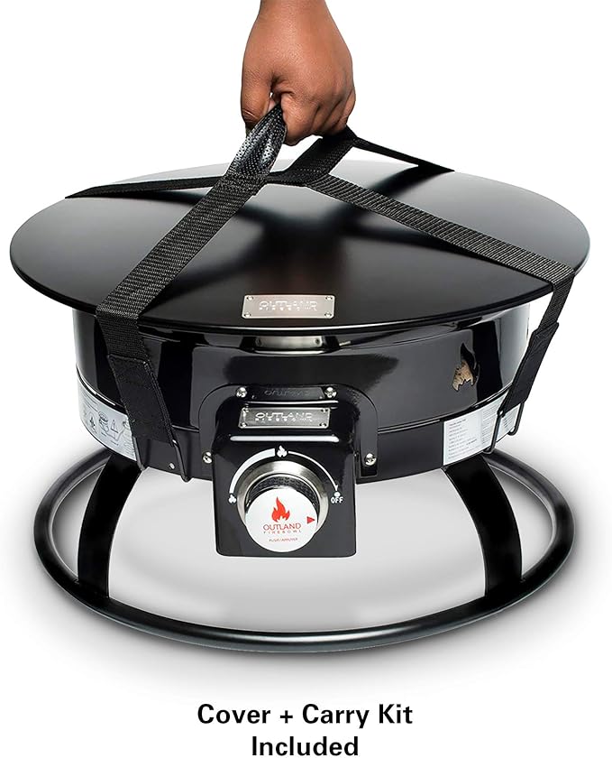 Outland Living Portable Propane Fire Pit, 19-inch, 58,000 BTU with Fire Pit Cover & Carry Kit, Smokeless Gas Firebowl | Perfect for Camping, Patio, Backyard, Tailgating, Deck, RV| Black 893 Deluxe