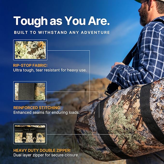 - COMPACT YET SPACIOUS:: Measuring 12" x 24", (44 Liter), this big travel bag is compact yet spacious enough for your essentials. Whether you need a gym bag, outdoor Weatherproof duffel bag for men or a camping bag, its large capacity ensures easy transport without compromising storage.