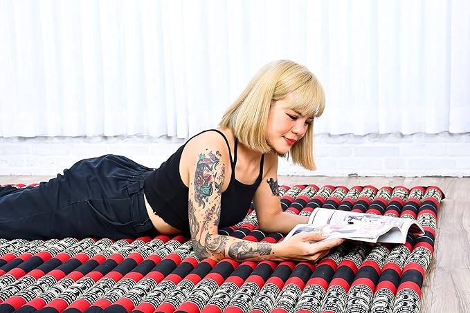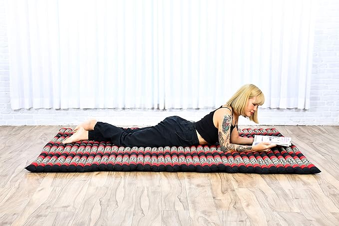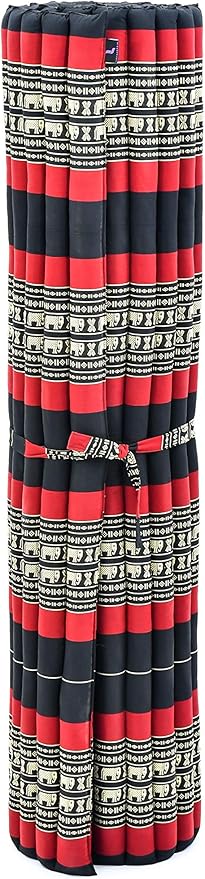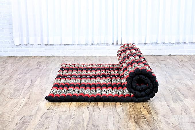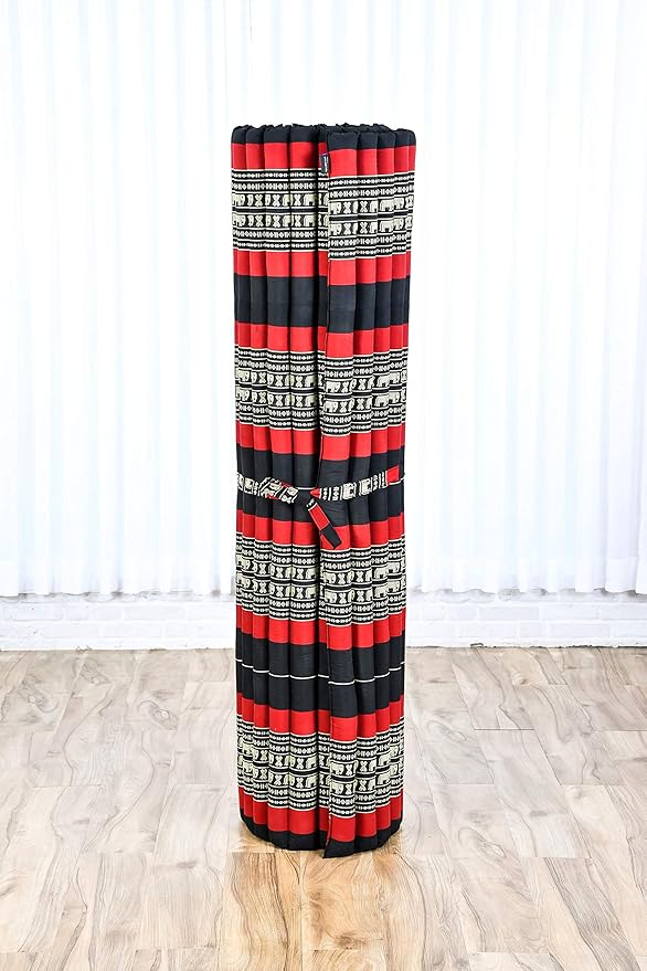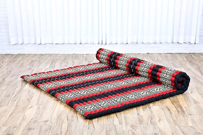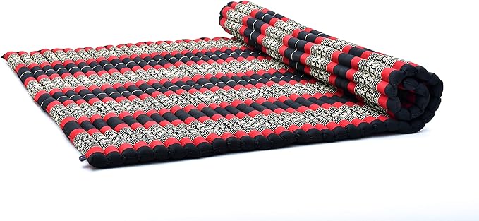 Leewadee - Foldable Floor Mattress - Japanese Roll Up Futon -Trifold Tatami Mat- Guest Floor Bed - Camping Mattress - Thai Massage Mat, Kapok Filled, 75 x 57 inches, Black Red