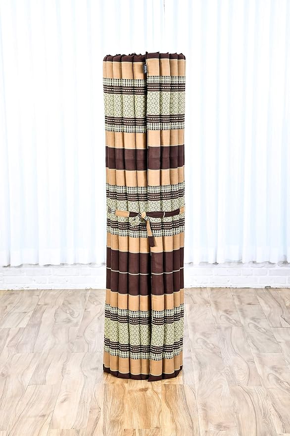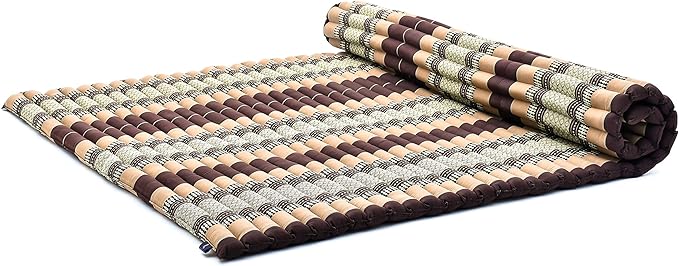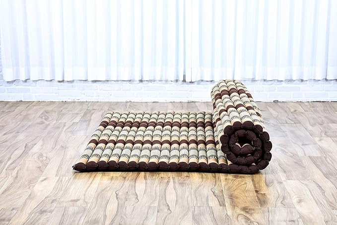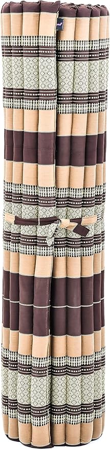 Leewadee - Foldable Floor Mattress - Japanese Roll Up Futon -Trifold Tatami Mat- Guest Floor Bed - Camping Mattress - Thai Massage Mat, Kapok Filled, 75 x 57 inches, Brown