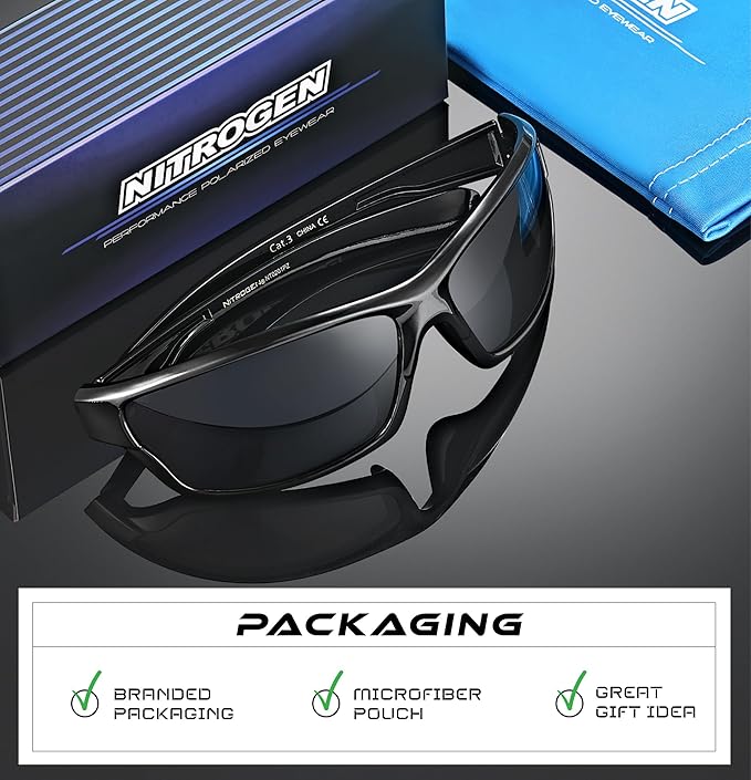 - PERFECT GIFT FOR EVERYDAY HEROES: Nitrogen sunglasses come in a stylish packaging box and a drawstring pouch, making them an ideal gift for anyone - whether they're into sports or just enjoying a sunny day.