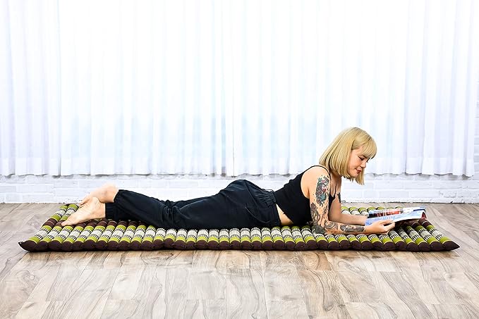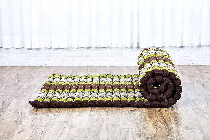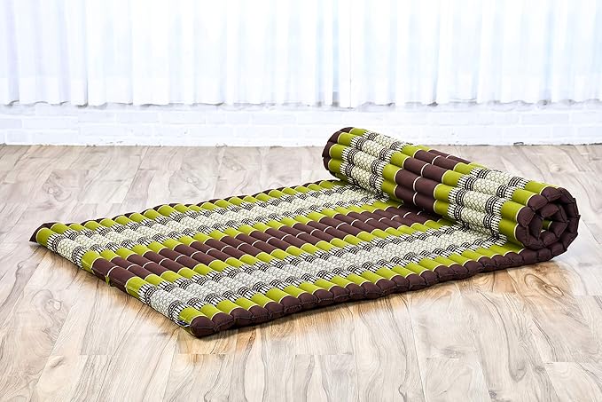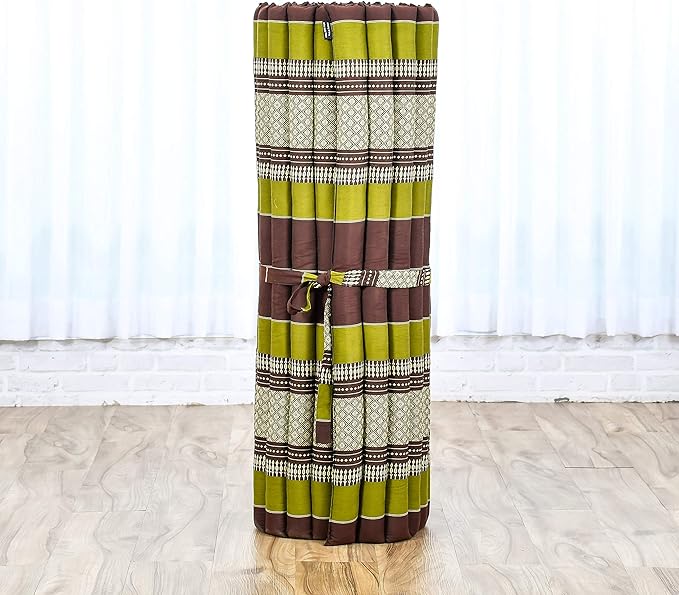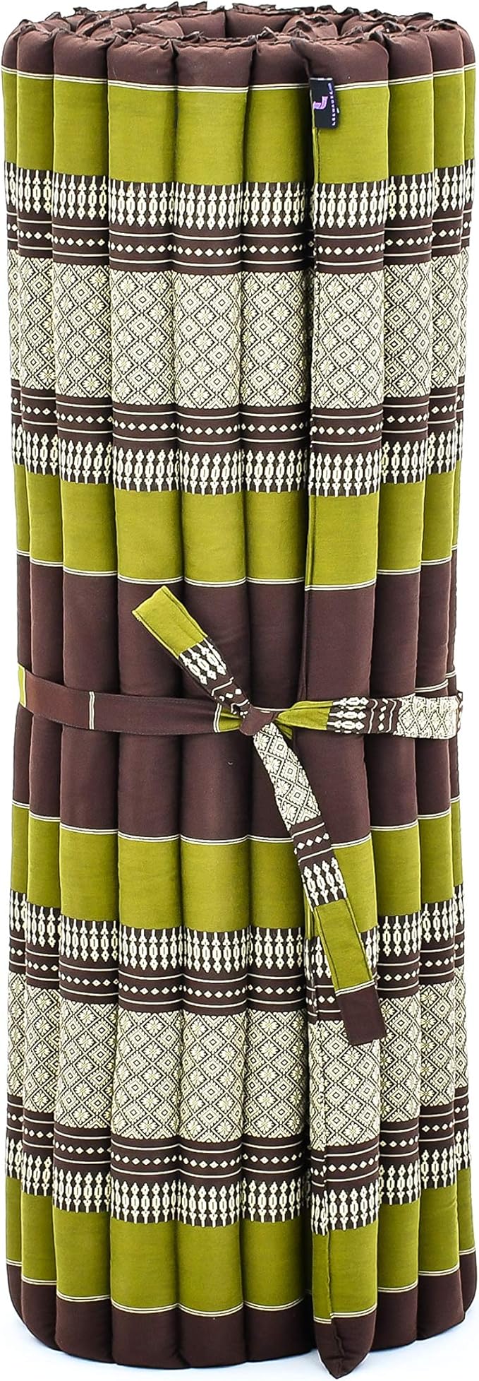 Leewadee - Kapok Roll Mat – Handcrafted Folding Sleep & Relaxation Mattress from Thailand, Ideal as Guest Bed, Camping Mat, Yoga Mat or Traditional Futon, 75 x 39 inches, Brown Green