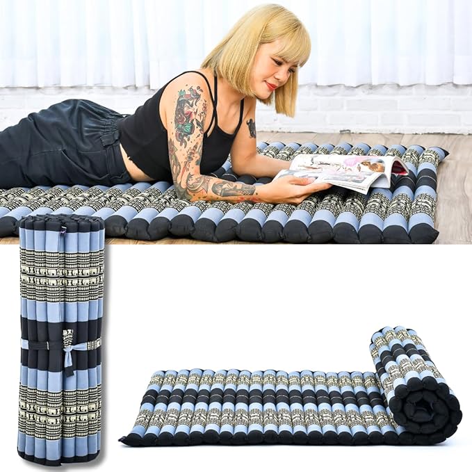 - The Thai tri-fold mattresses, almost full size, for adults and kids is padded with kapok. The stable and breathable fiber used allows for a pleasant and comfortable seating or sleeping position