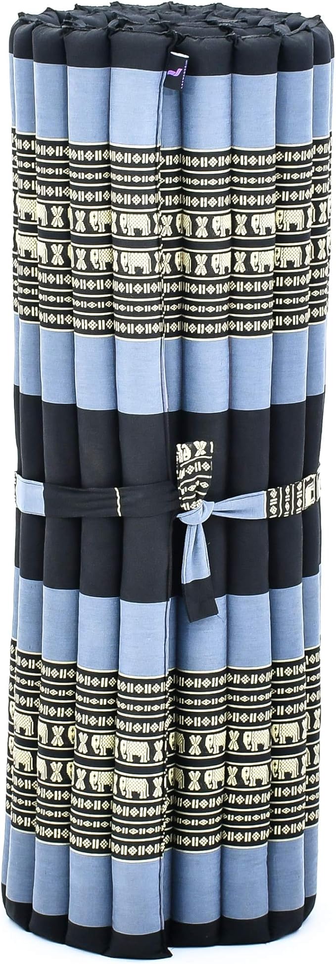 Leewadee - Foldable Floor Mattress - Japanese Roll Up Futon -Trifold Tatami Mat- Guest Floor Bed - Camping Mattress - Thai Massage Mat, Kapok Filled, 75 x 39 inches, Blue
