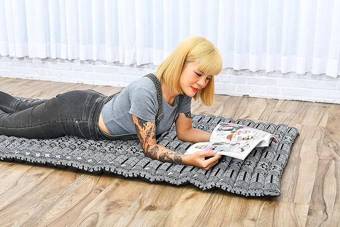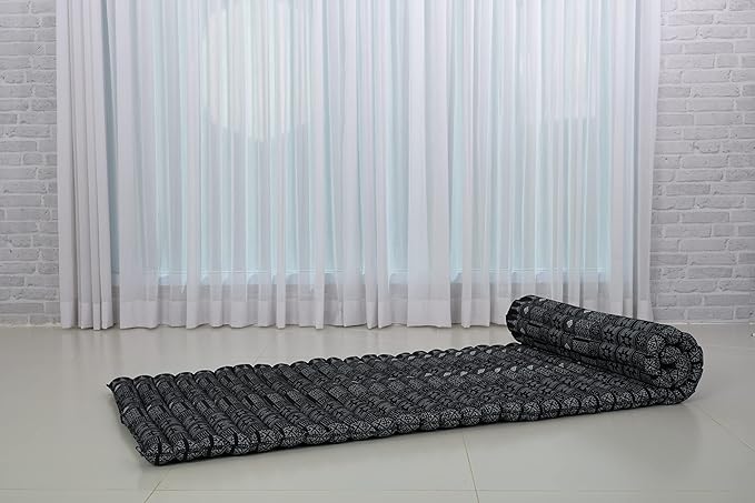 Leewadee - Foldable Floor Mattress - Japanese Roll Up Futon -Trifold Tatami Mat- Guest Floor Bed - Camping Mattress - Thai Massage Mat, Kapok Filled, 75 x 28 inches, Black