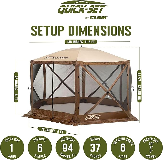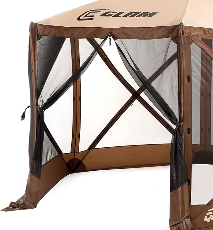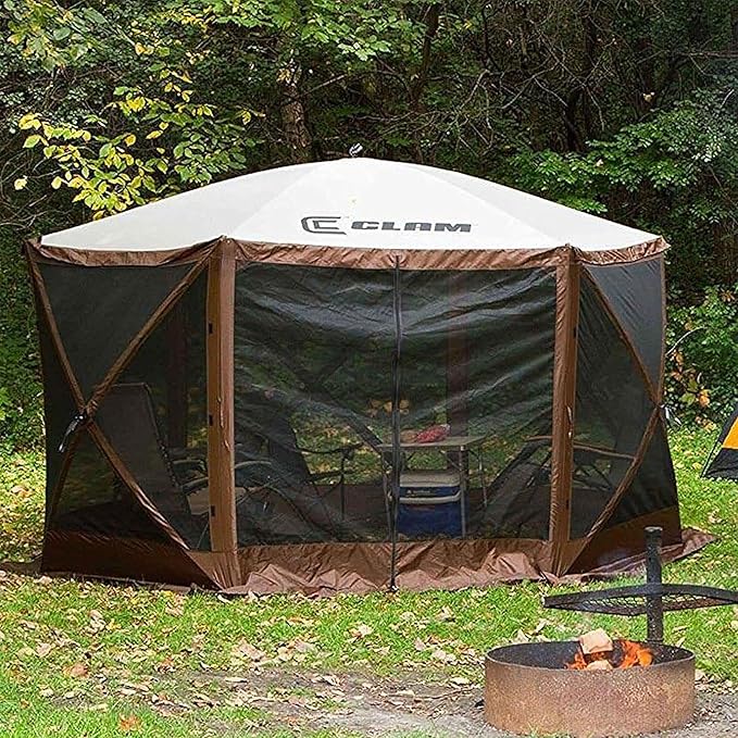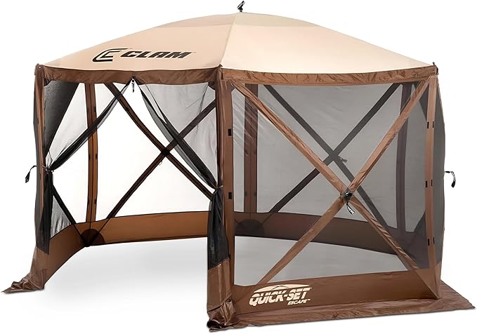 CLAM Pop Up Screen Tent, Outdoor Camping Gazebo Canopy, Escape, 11.5', Brown - Heavy-Duty Portable Screened Shelter with Netting for Beach, Patio, and Backyard