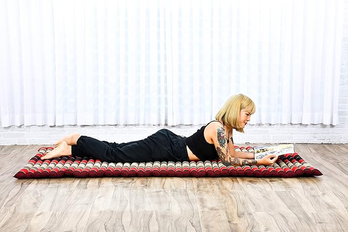 Leewadee - Kapok Roll Mat – Handcrafted Folding Sleep & Relaxation Mattress from Thailand, Ideal as Guest Bed, Camping Mat, Yoga Mat or Traditional Futon, 75 x 39 inches, Red