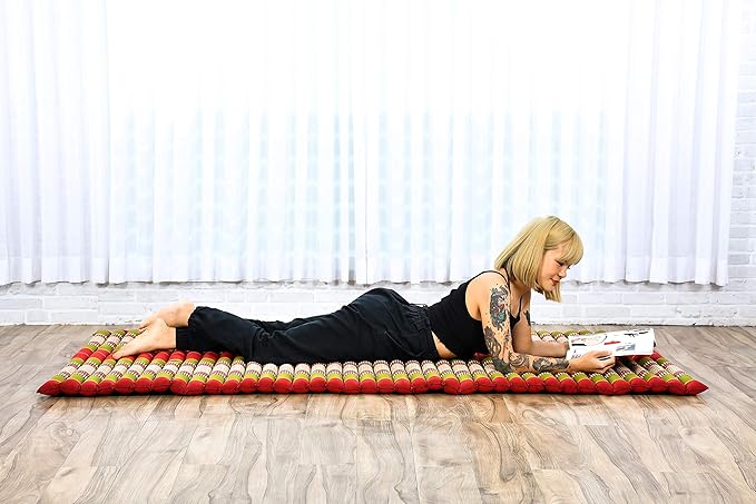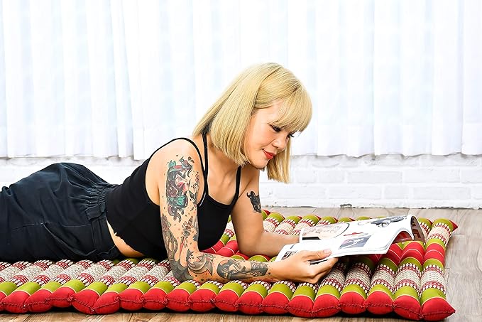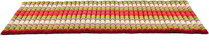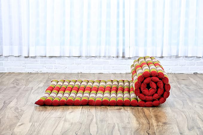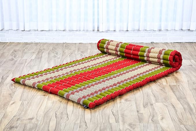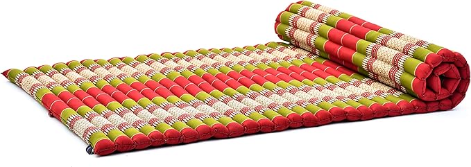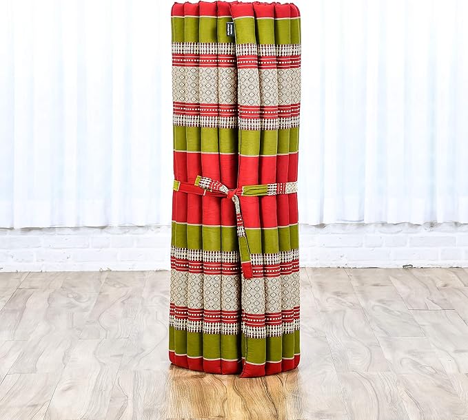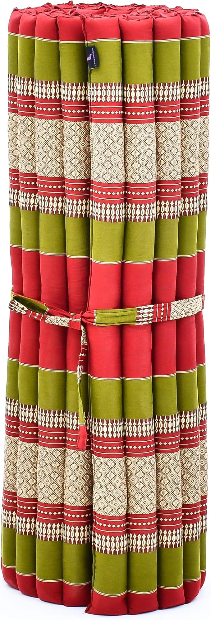 Leewadee - Kapok Roll Mat – Handcrafted Folding Sleep & Relaxation Mattress from Thailand, Ideal as Guest Bed, Camping Mat, Yoga Mat or Traditional Futon, 75 x 39 inches, Green Red