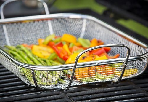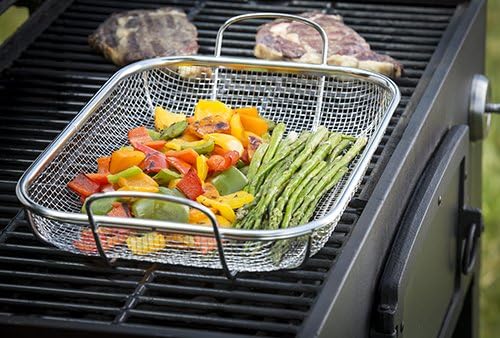 TableCraft BBQ Rectangular Grilling Basket with Handle, Silver, Medium