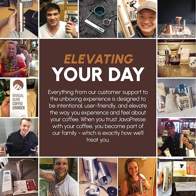 - ENHANCE YOUR MORNING WHILE MAKING AN IMPACT AROUND THE WORLD ― Your deliciously crafted cup of coffee from our manual coffee grinder is helping empower coffee farmers to chase a brighter future. A portion of our profits go towards positively impacting our partner’s coffee supply chain and their local communities. Our mission hinges on one fundamental idea: when we care, happiness flows and everyone wins. Including you with this hand coffee bean grinder by JavaPresse.