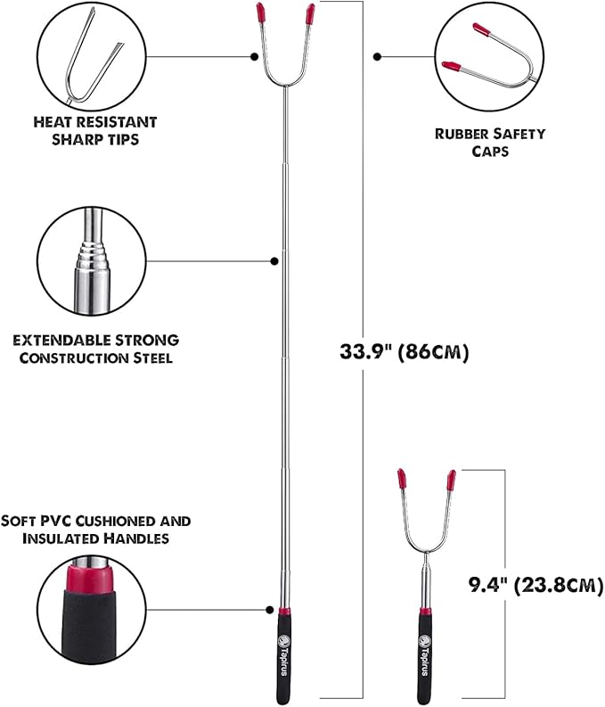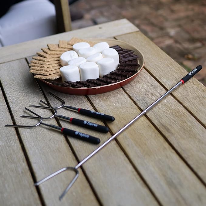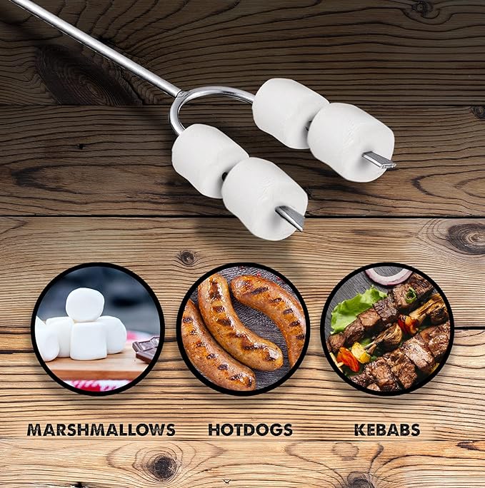 - Perfect for Campfires: These smores sticks for fire pit make bonfire cooking easy; designed for safety, our smore sticks extend to 33.9 inches, keeping hands away from the fire; perfect for roasting marshmallows, hotdogs, and more