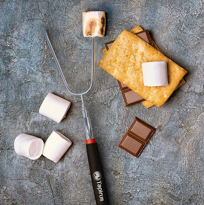 Tapirus Marshmallow Roasting Sticks | Set of 4 Extra Long Retractable Campfire Sticks | Protect Kids with Insulated Handles | Extendable Smore & Hot Dog Skewers | Heavy Duty Metal Camping Accessory