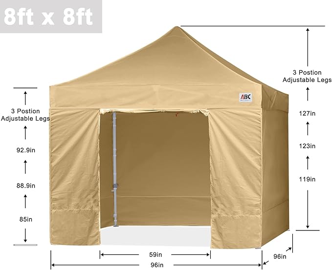 ABCCANOPY Easy Pop Up Canopy Tent with Sidewalls 8x8 Commercial -Series, Beige