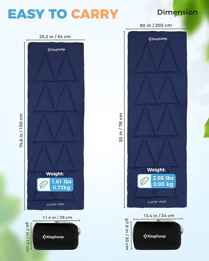 - LIGHTWEIGHT AND COMPACT - Weighing only 1.6 lbs, our camping pad is supremely portable, measuring 11.4×6.7×6.7 inches when compressed. You'll also receive a convenient carry bag that makes storage and transport a breeze.