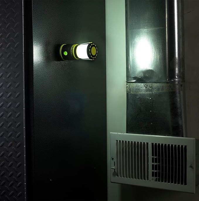 - Incorporated D-ring on bottom of lantern to hang it; spring-loaded to stow against the light, out of the way when not in use