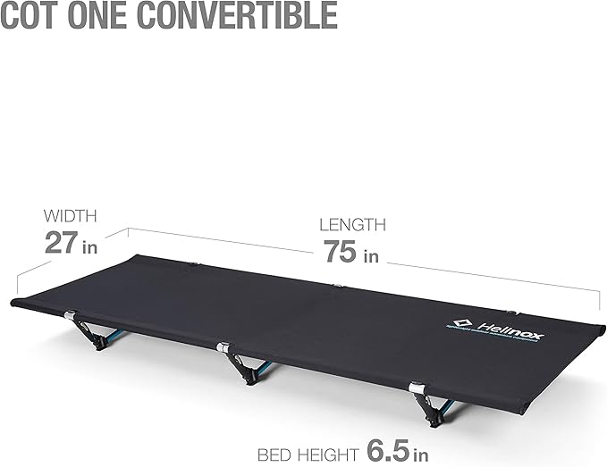 - Cot One Convertible Description The Helinox Cot One is the perfect addition to your camping gear or just to have an extra bed around the house for overnight guests. This folding camp cot is made of super strong aluminum that can support up to 320 pounds, yet is still easy to set up thanks to an innovative tensioning system. Lightweight enough to easily transport from your car to the campsite, the Helinox Cot One folds down into a small size in the included storage bag when it's time to pack ever