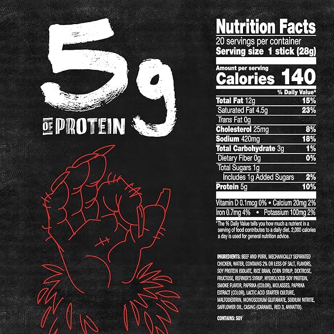 - CONTAINS 5g OF PROTEIN: The perfect mouth watering snack with 5g of protein per serving. Jack Link's WILD Original Snack Sticks are the pick-me-up munch you need with a great flavor you can chomp on anytime, anywhere. Just Click, Ship, Snack
