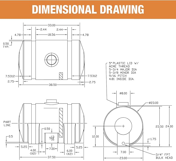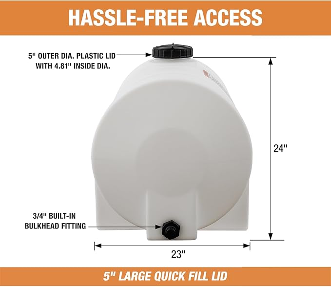 - Wide fill cap allows for fast refills, while built-in drain and bulkhead fitting make siphoning, emptying, and routine tank maintenance quick and convenient