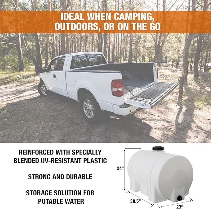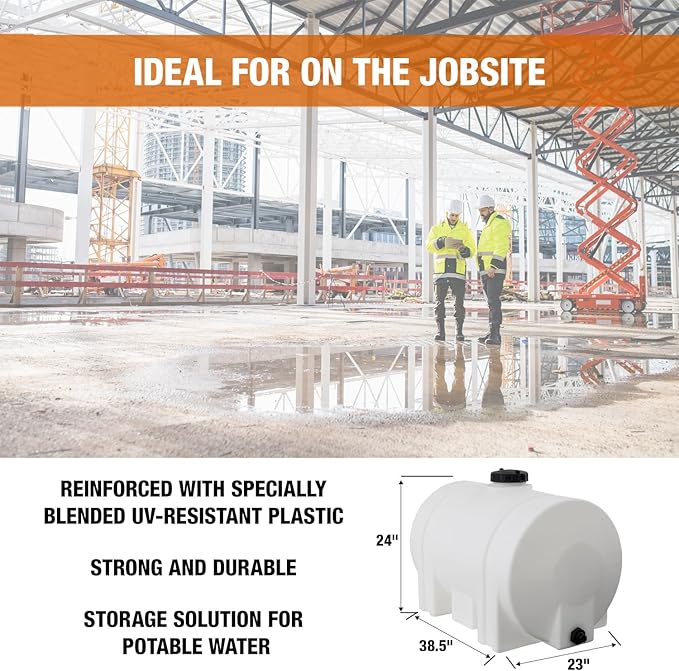 - Stores non-flammable liquids such as potable water, agricultural chemicals, and industrial fluids; ideal for farm, camping, landscaping, and job site liquid transport