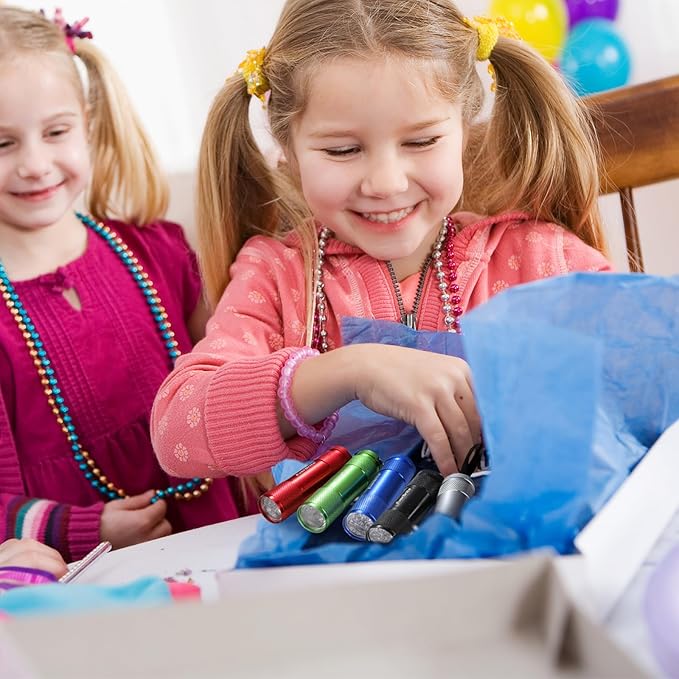 - ✿18 Pack Mini Flashlights - You are not just getting one, two or even three mini flashlights, you are getting an incredible 18 that come in 6 different colors. 3 x red, 3 x blue, 3 x green, 3 x silver, 3 black and 3 x gray. Our set also includes 54 x AAA batteries so you don’t have to spend time or money going to the shop or online to purchase. You can start using the lights right away