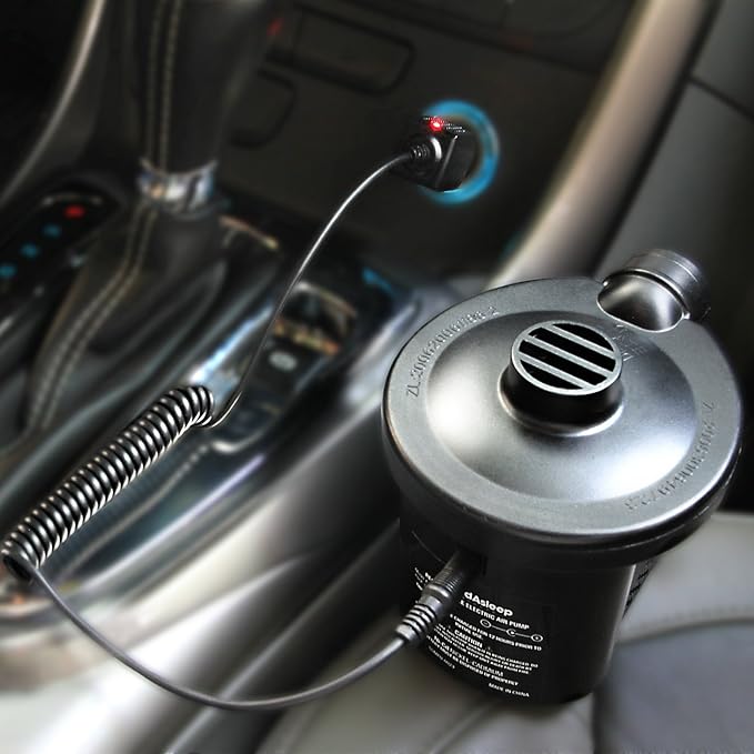 - Patented, external pump is include for easy inflation / deflation. The pump features a heavy duty rechargable battery, which can be charged either at home in advance of your trip or with a car charger on the road.