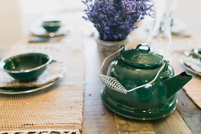 GSI Outdoors Tea Kettle | Enameled Steel 10 Cup Tea Kettle for Outdoor Cooking, Camping, Cabin and Home Kitchen