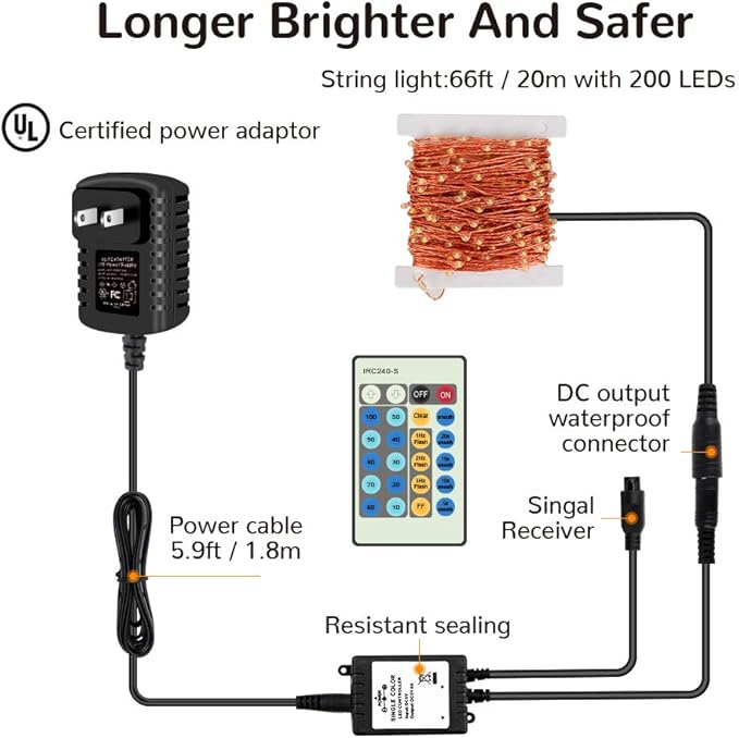 - SAFE TO USE- Power Adapter is guaranteed with UL certification. The copper wire of this string light is enamel coated, making it well-insulated. Please feel free to use with safety.