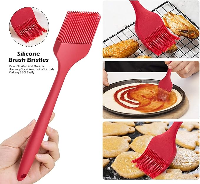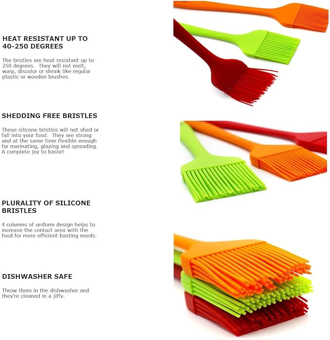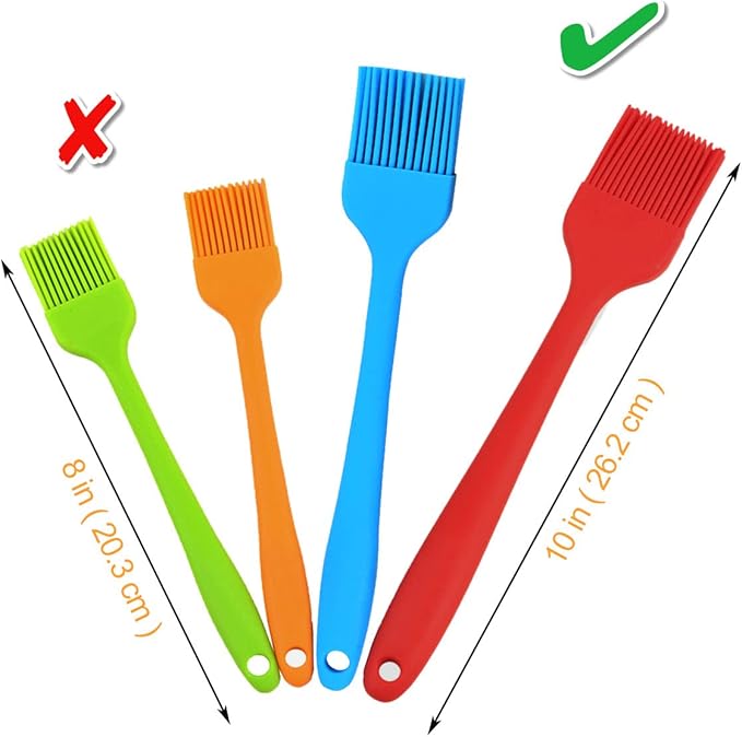 10" Silicone Pastry Basting BIG SIZE Brushes Heat Resistant BPA Free for BBQ Grill Barbecue & Kitchen Baking Cooking Marinating Oil Brushes Soft Bristles Long Handle (3, 10 Inches)