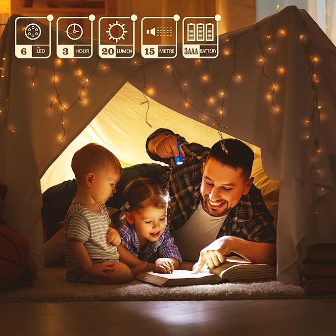 - SUPER BRIGHT: Each mini flashlight is equipped with 6-piece Bright LED, provides with 20 lumens of light output. Suitable for night walk, bedroom reading, camping, hiking, fishing, nursing, BBQ.