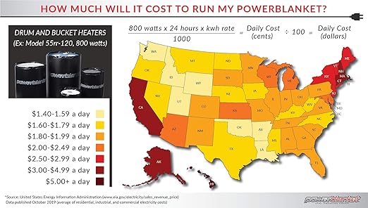 Powerblanket BH55RR-80 Industrial Grade/Weather Resistant D-15 Vinyl Shell 55 gal Insulated Drum Heating Blanket, Fixed Internal Thermostat 80 Degree F, Barrel Heater, Black