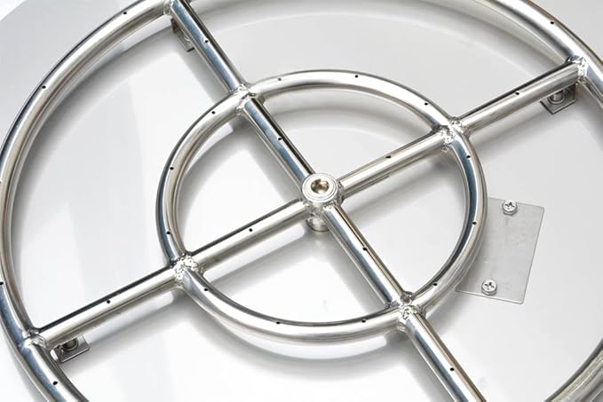Stanbroil Stainless Steel 24" Round Flat Fire Pit Burner Pan w/18 Fire Ring Installed, BTU 147,000 Max