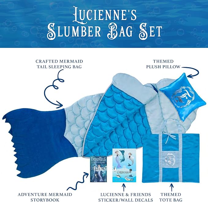 - Perfect for Sleepovers: This 5-piece girls slumber set includes a beautifully crafted Mermaid Tail Sleeping Bag, an adventure mermaid storybook, a themed tote bag with large pockets, and a plush-themed pillow; everything needed for an unforgettable sleepover experience, turning any night with friends into a magical underwater adventure, creating lasting childhood memories.