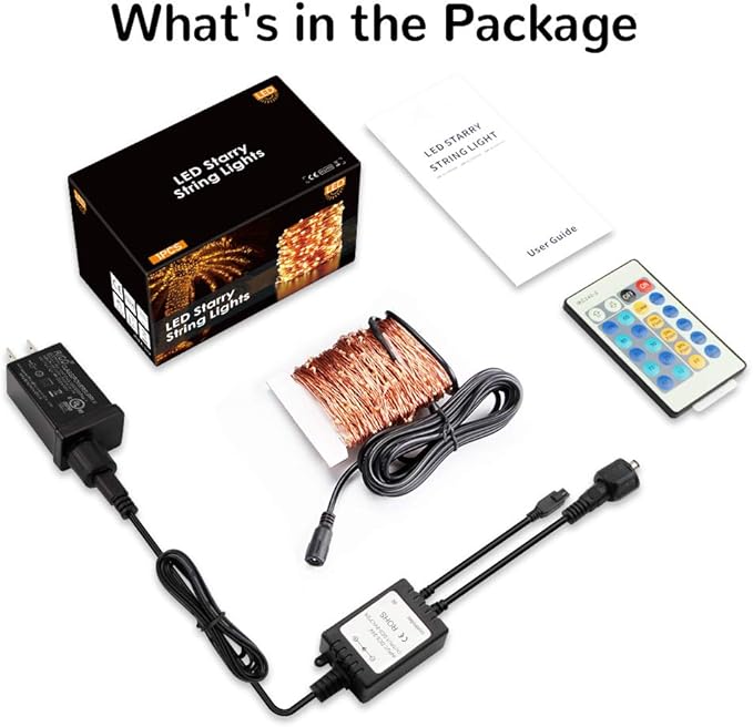 - ☑️UL-LISTED PLUGIN FAIRY LIGHTS: The power adapter of the copper wire lights is guaranteed with UL certification and very safe to use. Also, the gold string lights are enamel coated, making them well-insulated. Please be assured that using them as the twinkling night lights for bedroom decor of girls, boys, or old men. Also a good choice of gift for friends.
